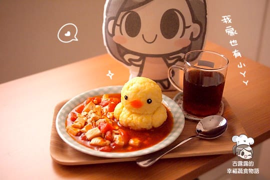 露露日常料理 ▌獨家!黃色小鴨「現身你家」超萌蕃茄豆腐燴飯