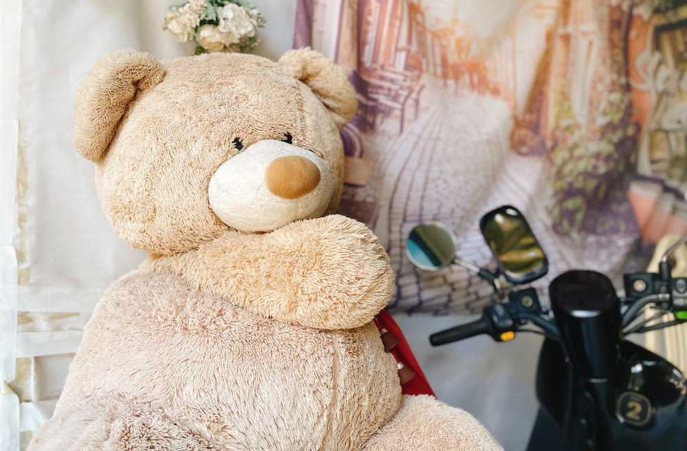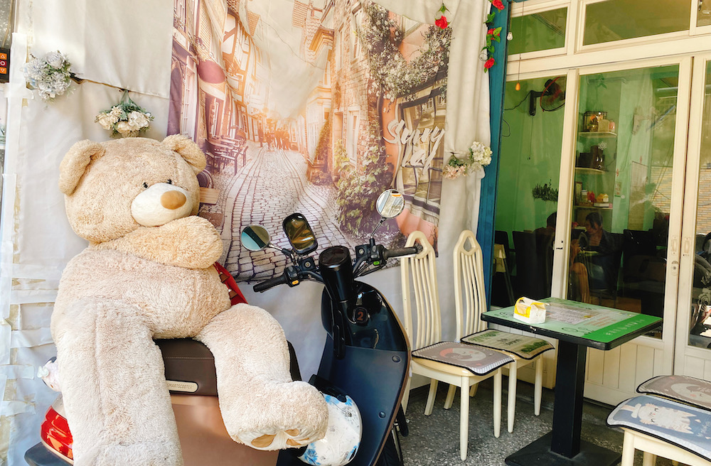 店門口有一隻大熊熊很可愛,菜單夾在餐桌上,直接掃桌上的QR code點餐就行,現在真的越來越多店都這樣了。