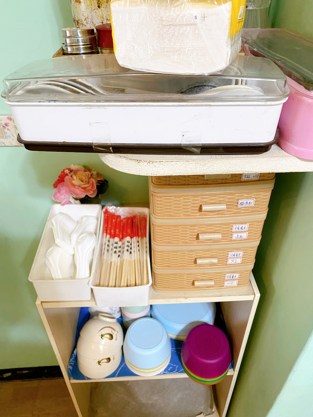 旁邊有個自助區,餐具、醬料、吸管什麼的都自己拿,還有兒童餐具。這邊吃完也一樣要自己把餐盤收到回收區喔~