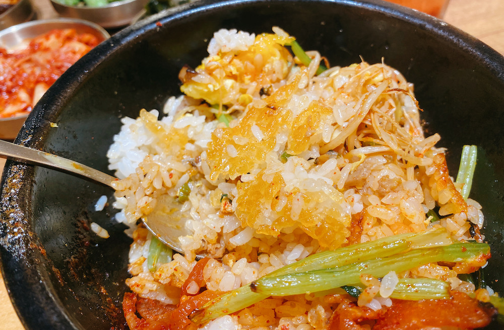 我點的是招牌石燒拌飯,上桌拍完照立刻攪拌,不過鍋巴對我來說有點太多。配料相對簡單,但飯量很足,搭上五樣小菜剛剛好。