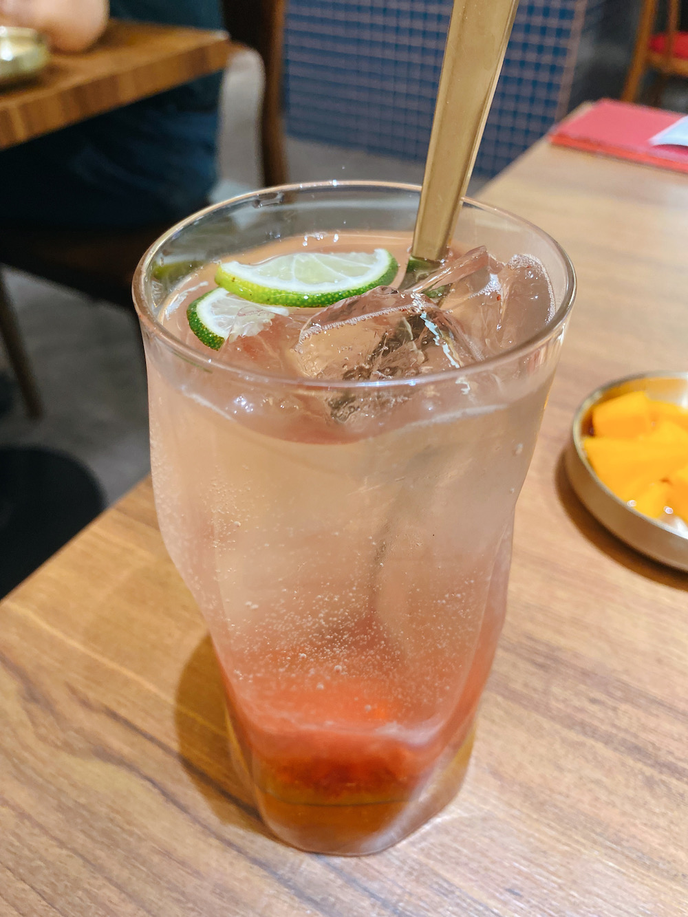 我還點了一杯氣泡飲,清爽解膩,粉嫩的顏色看了就開心。