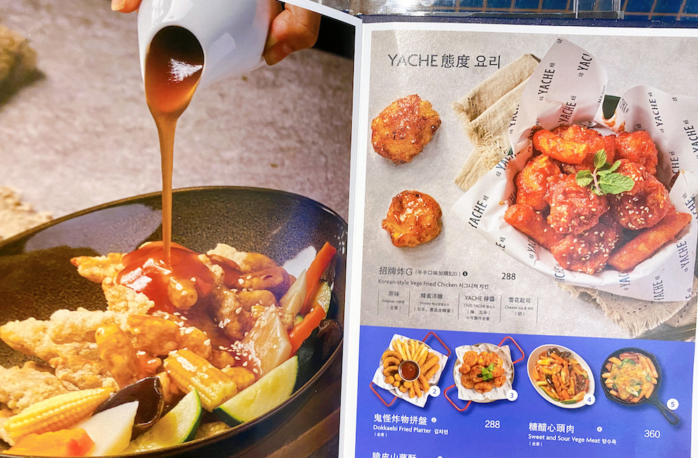 Yache 是養心集團旗下品牌,主打創新韓式蔬食料理,用植物性食材呈現韓式風味。招牌包括: