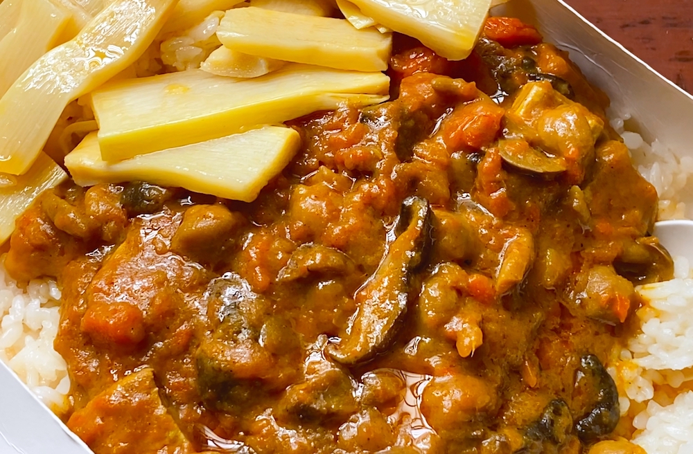 有紙盒當食物容器,而且餐盒還做了「素食版本」,有顧到不同的飲食需求。